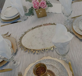 Tempered Glass Shabbos Hot Plate by Dorit Judaica Table Runner by Yael Resnick Ceramic Washing Cup Handmade in Israel